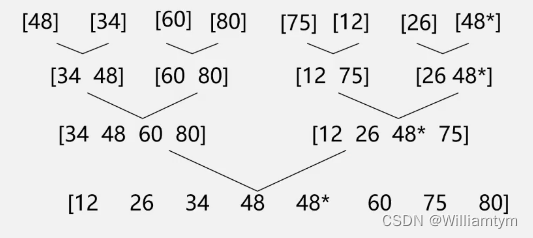 设初始关键字序列为[48 34 60 80 75 12 26 *48]
