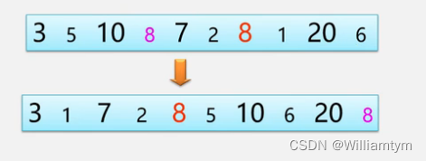 稳定排序:能够使任何数值相等的元素,排序以后相对次序不变。
