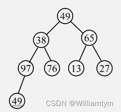 有关键字为49, 38, 65, 97, 76, 13, 27, 49的一组数据,将其按照关键字调整为一个小根堆。