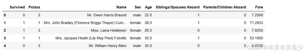 # 加载数据集 path = "E:\\Jupyter Workspace\\数学建模\\titanic.csv" data = pd.read_csv(path) # 显示数据的前几行 data.head() # 查看数据的详细信息 data.info()