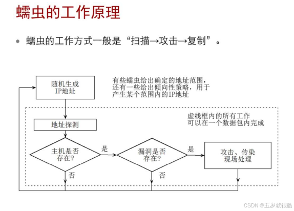 1、蠕虫病毒是从一个计算机上自我拷贝传染到其他计算机上的恶意程序
