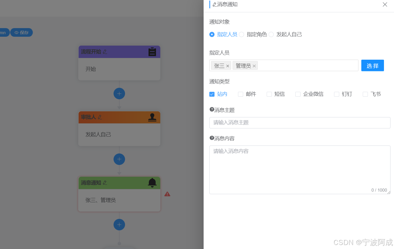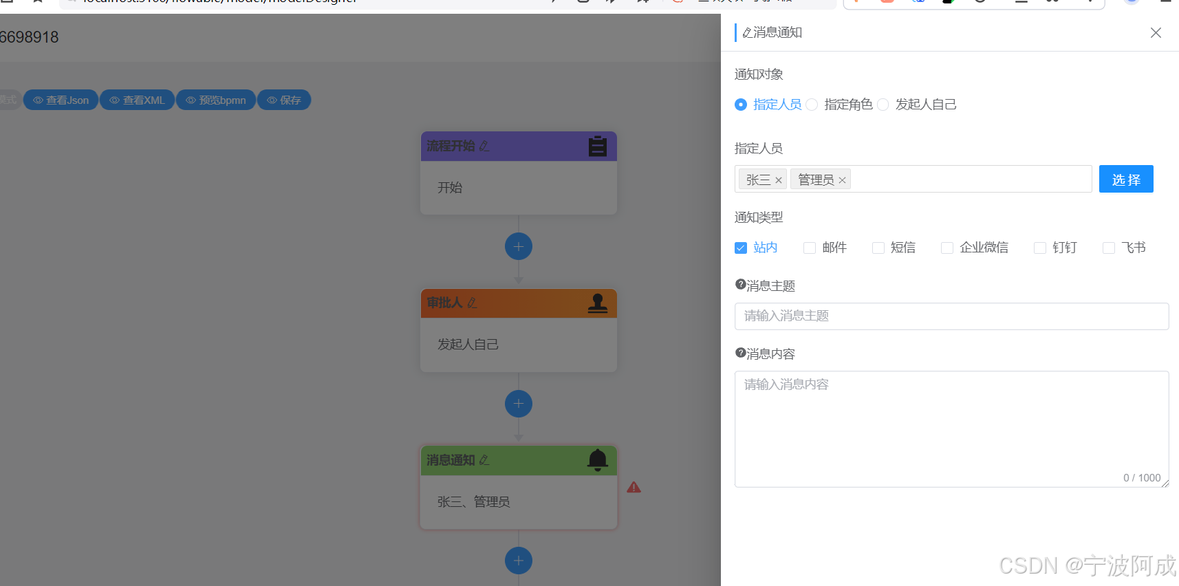 1、因为仿钉钉设计器里发送消息处理是一个服务任务,所以要根据这个服务任务进行处理