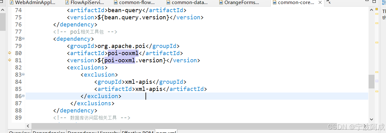 从上面可以看到poi-ooxml包含了这个,所以需要去掉这个,如下: