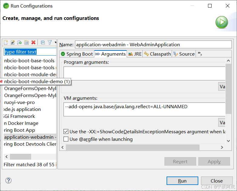 增加--add-opens java.base/java.lang.reflect=ALL-UNNAMED,如下