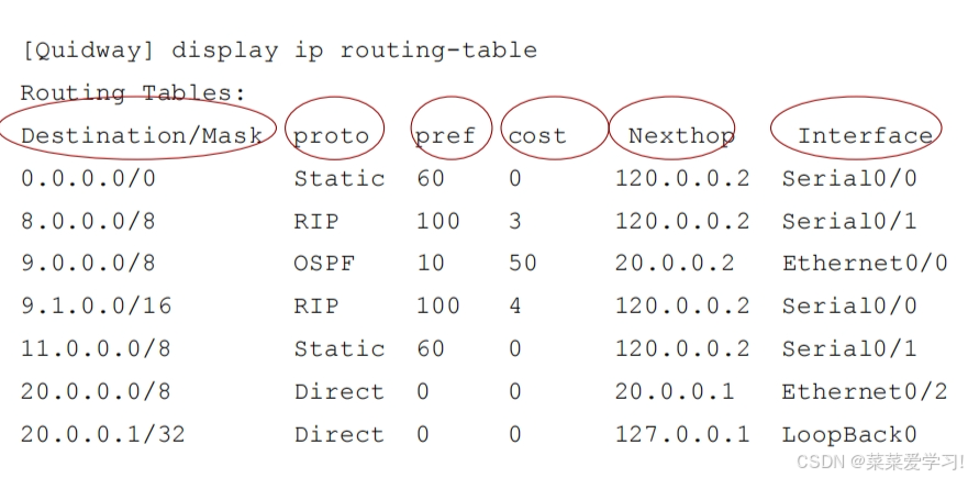 1、Destination/Mask:IP报文的接收方的IP地址及其子网掩码;