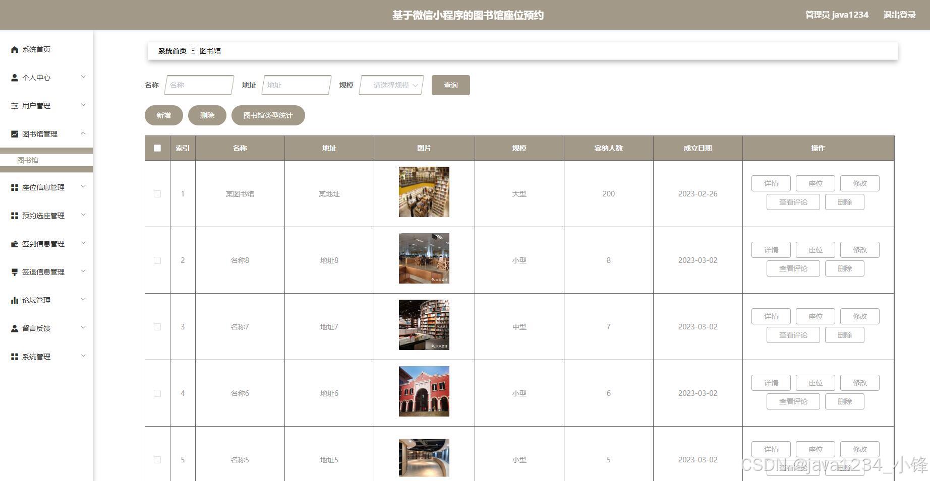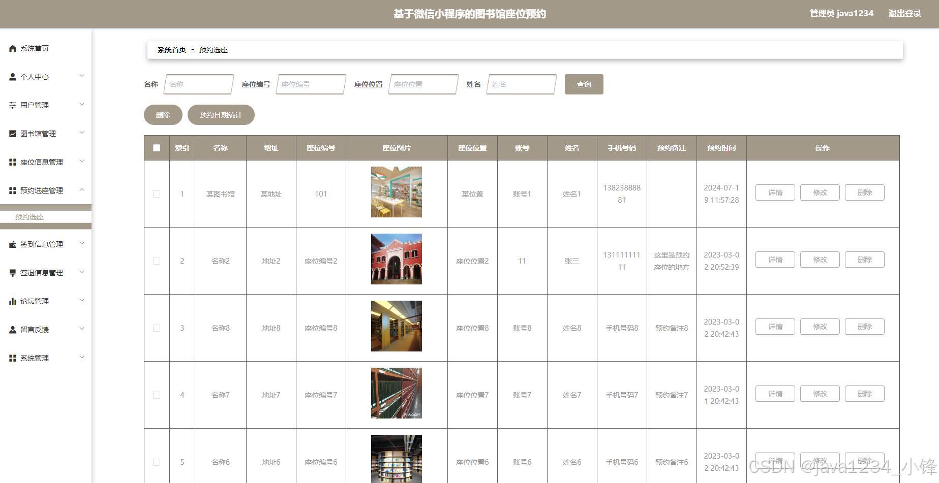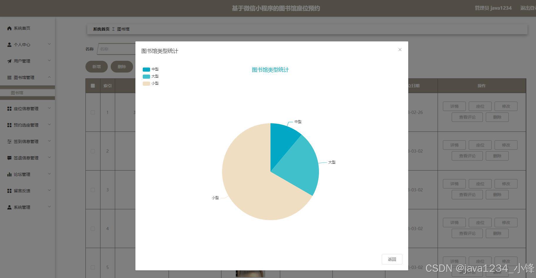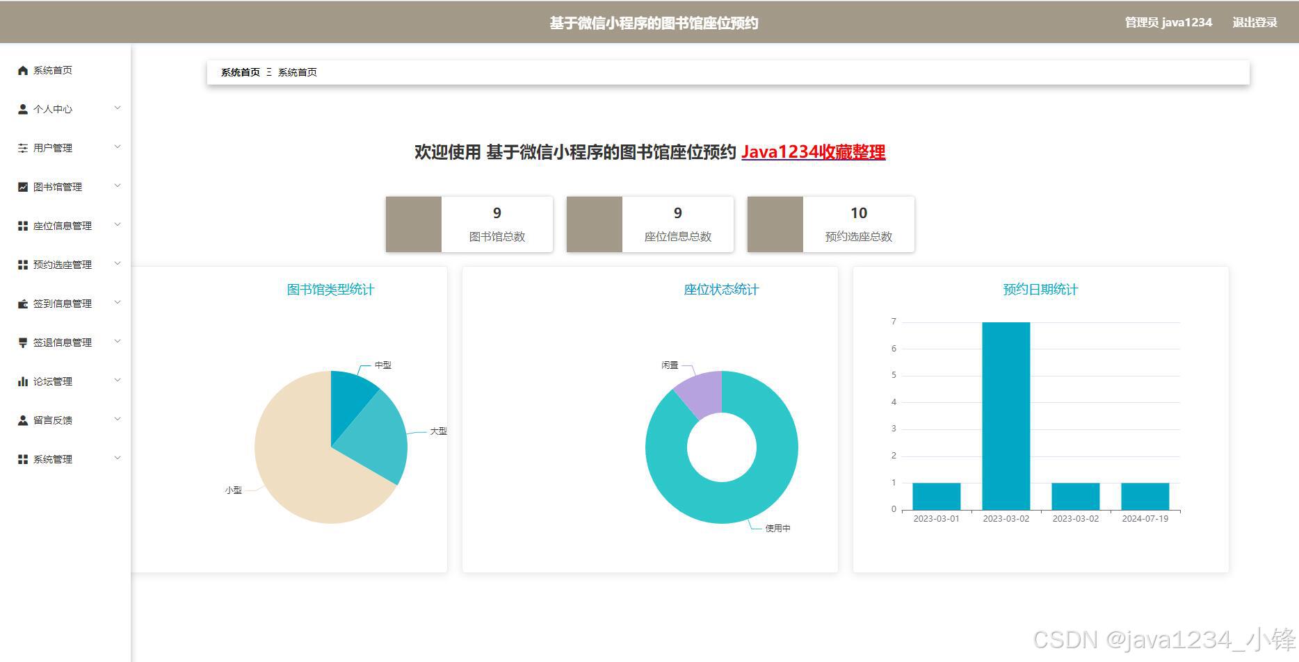 大家好,我是java1234_小锋老师,看到一个不错的微信小程序图书馆座位预约管理系统(SpringBoot后端+Vue管理端),分享下哈。