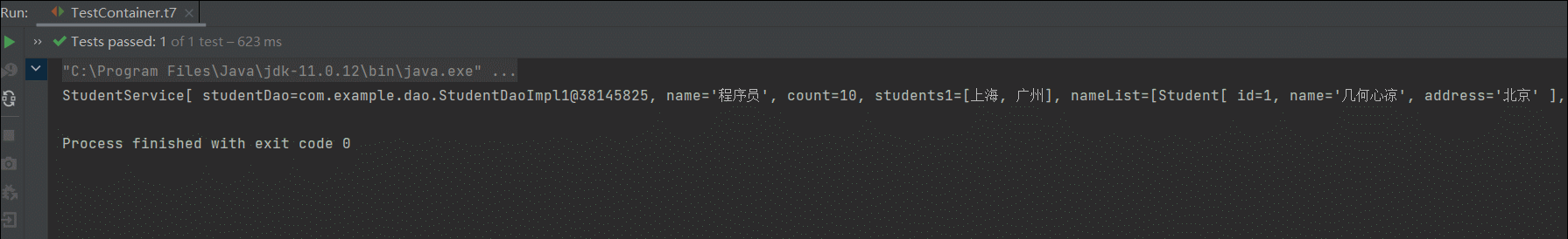 // 测试注入类型 @Test public void t7(){ ApplicationContext ac = new ClassPathXmlApplicationContext("bean.xml"); StudentService service = (StudentService) ac.getBean("studentService"); System.out.println(service); }