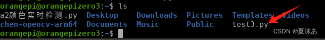 输入ls命令查看当前文件夹文件,你就能看到test3.py文件了