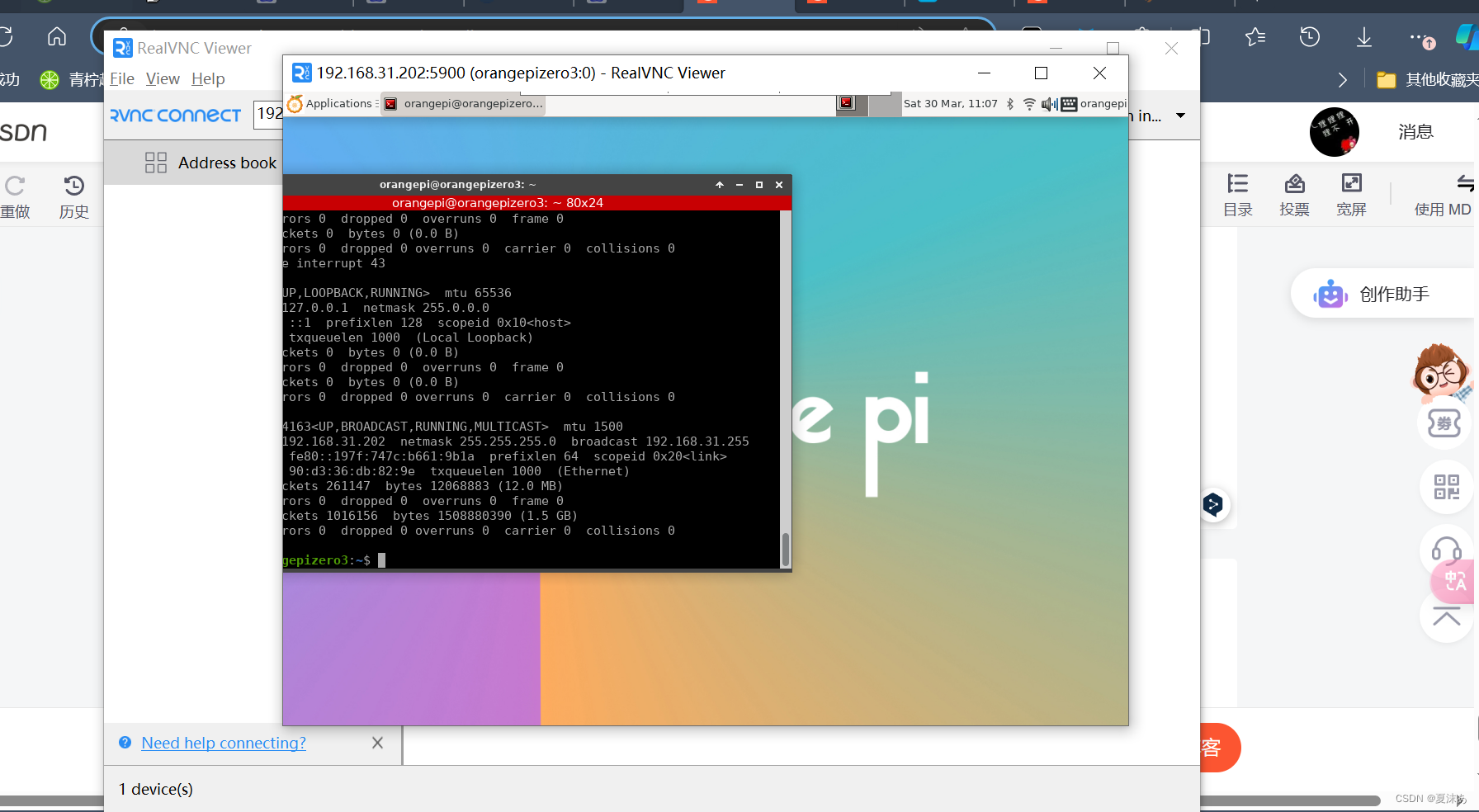 我们常常碍于有时候想要看看代码执行在arm端上的效果,但是又没法通过ssh的文本形式看到,于是,VNC出现了,它能够直接从我们的电脑上直接看到派当前运行的桌面,这样子你就做到了一个显示器看两个设备的画面了,并且还可以实时控制,以下是我在电脑端的截图