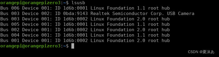 插入usb摄像头 此时使用lsusb命令来查看摄像头是否挂载