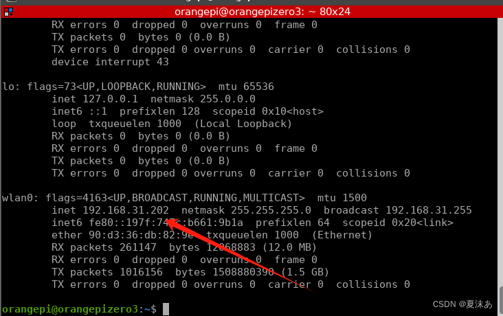这样192.168.31.202就是我的派在局域网的ip 获得了局域网ip我们就可以通过用户名加ip找到我们的派