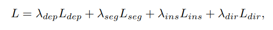 SuperFusion损失函数由四部分组成,考虑深度估计、语义分割、实例嵌入和方向预测损失。总体损失函数,如下所示: