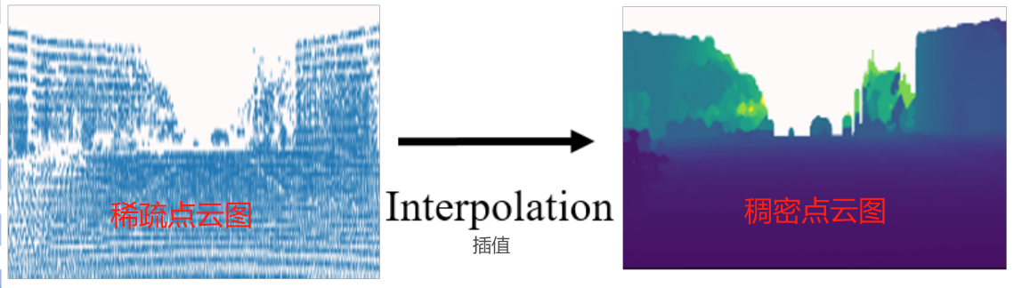生成密集深度图作为标签:在稀疏深度图上插值生成密集深度图,此方法通过将每个像素的深度值离散化到深度分箱中,然后使用one-hot编码向量对深度预测网络进行监督,从而改善深度估计的准确性。