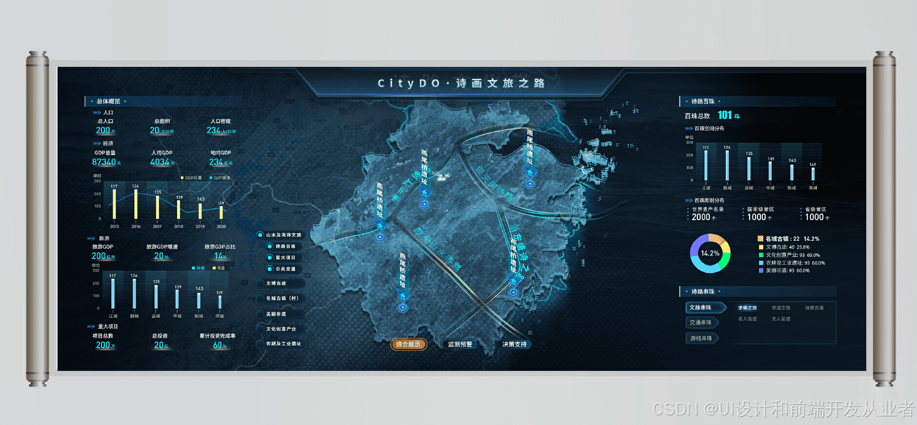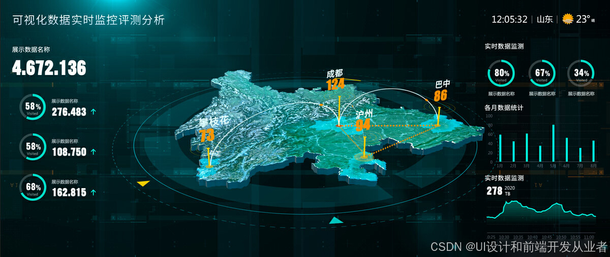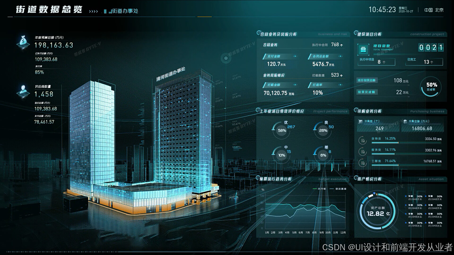 - 实时更新:在数据驱动的世界中,实时性是至关重要的。大数据界面能够即时反映最新的数据变化,确保趋势分析的时效性。如需获取ui设计和前端开发的帮助请在我的私信里面对接谢谢!