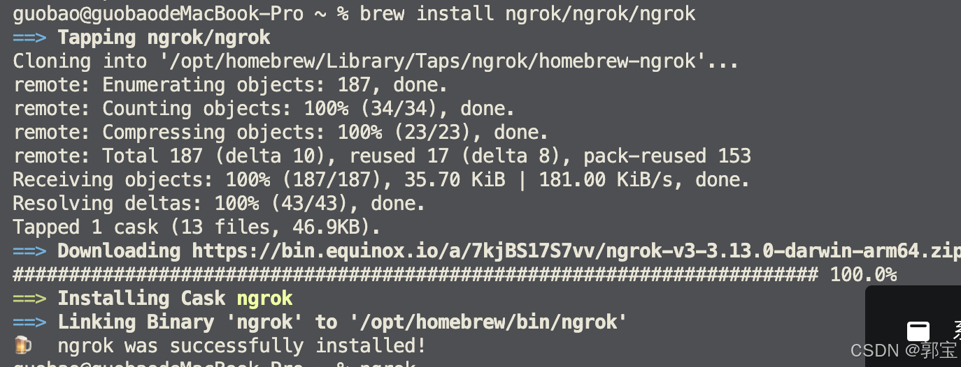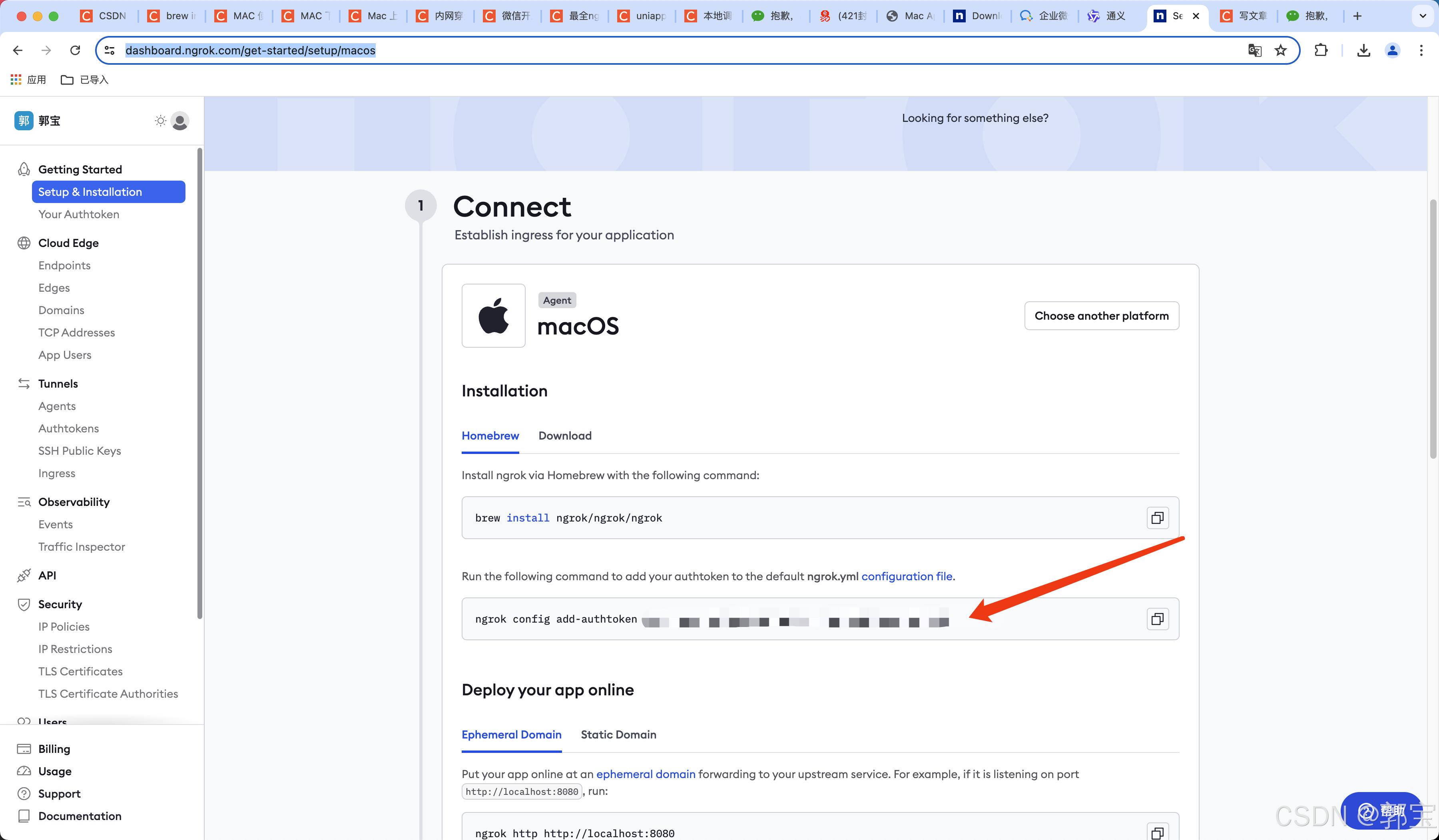 需要登录ngrok 网站获取,https://dashboard.ngrok.com/get-started/setup/macos