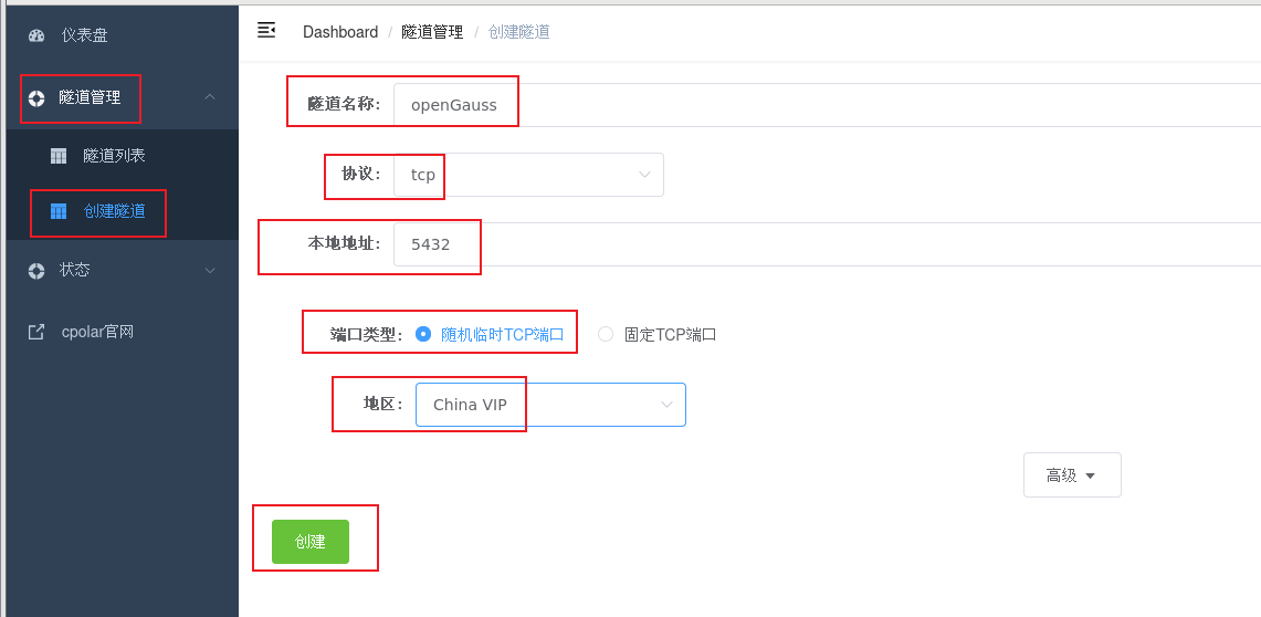 登录cpolar web UI管理界面后,点击左侧仪表盘的隧道管理——创建隧道: