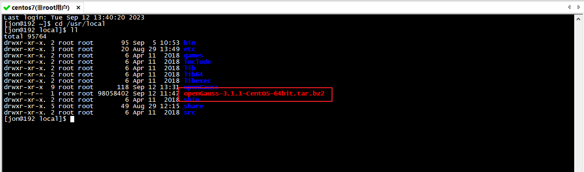 tar -jxf openGauss-3.1.1-CentOS-64bit.tar.bz2 -C /usr/local/openGauss