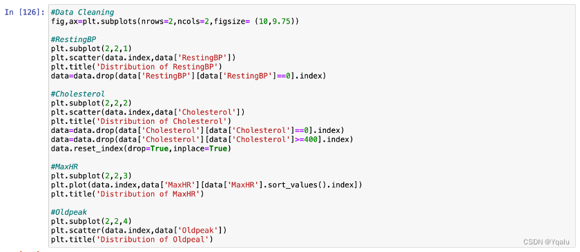 Take the RestingBP and Cholesterol as examples. According to the actual situation, the RestingBP could not be 0. Considering the relatively small number of outliers, this report deletes the outlier directly by calling the “drop” function. Similarly, Cholesterol values greater than 400 or equal to 0 are also considered outliers and excluded.