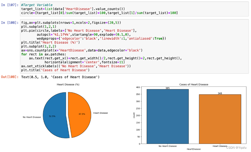 target=np.array(data['HeartDisease']) data=np.array(data.drop('HeartDisease',axis=1)) Xtrain,Xtest,Ytrain,Ytest=train_test_split(data,target,test_size=0.2,random_state=0) print('Shape of training feature:',Xtrain.shape) print('Shape of testing feature:',Xtest.shape) print('Shape of training label:',Ytrain.shape) print('Shape of testing label:',Ytest.shape) Output: