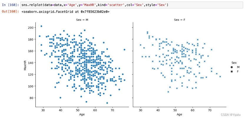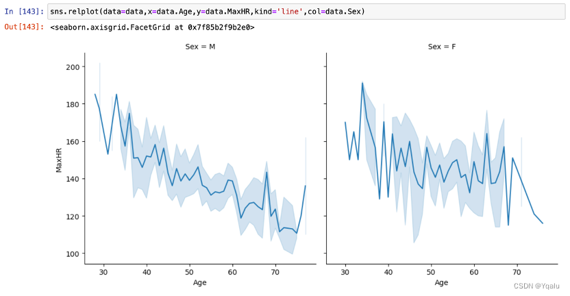 MaxHR showed an obvious decreasing trend with age. In terms of gender comparison, the rate of decline was lower in women than in men.