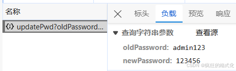 在若依的 Vue 前端分离版中登录密码和修改密码时可以发现密码是明文传输的,超管重置用户密码时同样如此,如下图所示: