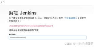 第一次访问会提示初始密码的位置:在/var/lib/Jenkins/secrets/initialAdminPassword日志文件中;