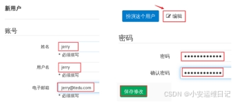 创建用户并填写相关账号信息,第一步先创建,再首页点击【编辑】设置用户的密码