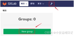 2)创建组,点击GitLab页面导航栏的小扳手图标【管理区域】,进行组创建
