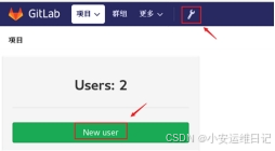 1)创建用户,点击GitLab页面导航栏的小扳手图标【管理区域】,进行用户创建
