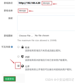 设置组名称(组名称为devops)以及可见等级(等级为公开)