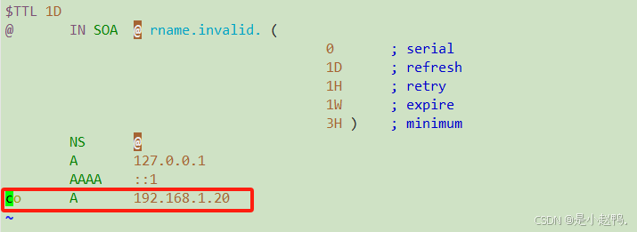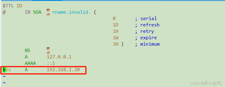 [root@dns named]# cp -p named.localhost 192.168.1.20.zone