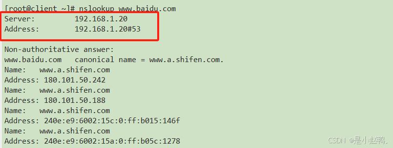 如上图所示,dns服务器找到了对应的域名,成功完成了反向解析