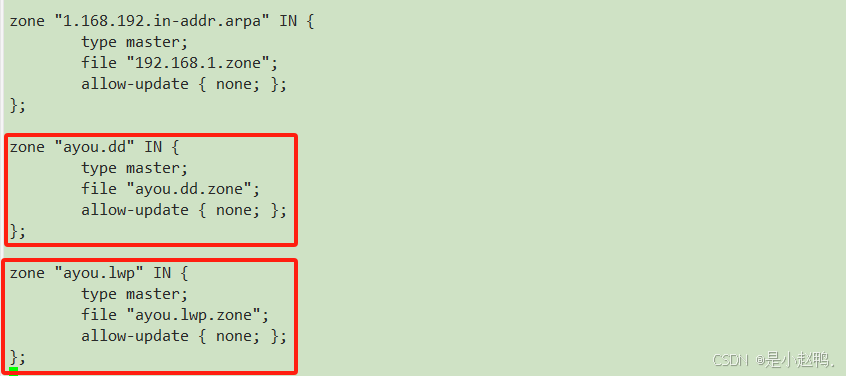 [root@dns named]# cp -p named.localhost ayou.dd.zone