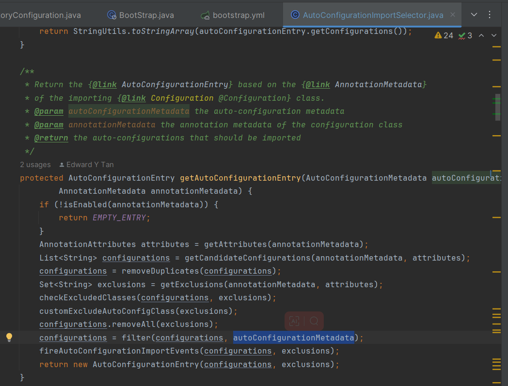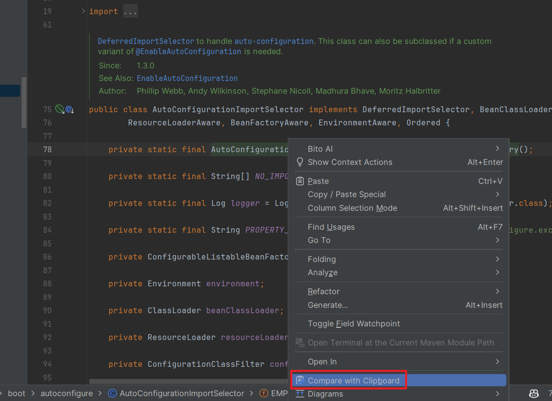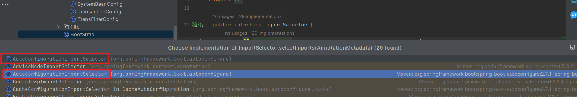 Ctrl+A全选Ctrl+C复制我们自己写的代码,然后跳进内部的AutoConfigurationImportSelector