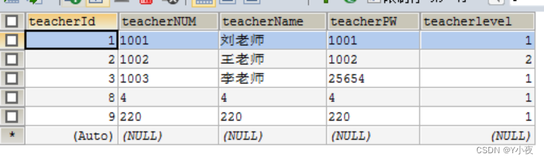 insert into `teacher`(`teacherId`,`teacherNUM`,`teacherName`,`teacherPW`) values (1,'1001','刘老师','1001'),(2,'1002','王老师','1002'),(3,'1003','李老师','25654');