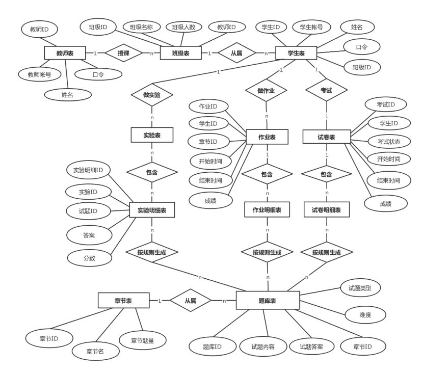 - 学生帐号,按照规则生成学生试卷总表以及试卷明细表。