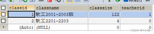 - 触发器的功能是在`class`表中,将对应班级的`classsize`字段值加1,表示有新学生加入该班级。
