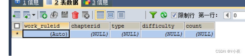 CREATE TABLE `word_rule` ( `work_ruleid` int(11) NOT NULL AUTO_INCREMENT, `chapterid` int(11) DEFAULT NULL, `type` int(11) DEFAULT NULL, `difficulty` int(11) DEFAULT NULL, `count` int(11) DEFAULT NULL, PRIMARY KEY (`work_ruleid`) ) ENGINE=InnoDB DEFAULT CHARSET=utf8;
