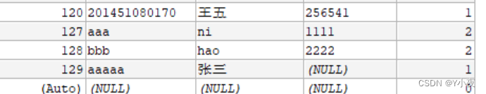 DELIMITER $$ CREATE PROCEDURE `network_course`.`insert_student`( in num0 varchar(20), in name0 varchar(20), in pw0 varchar(20), in classid0 varchar(20) ) BEGIN declare count1 int; select count(*) into count1 from student where studentnum=num0; if count1=0 then insert into student(`studentnum`,`studentname`,`studentpw`,`classid`) value(num0 ,name0,pw0,classid0); end if; END$$ DELIMITER ; 执行:call `insert_student`("aaaaa",'张三',NULL,1);