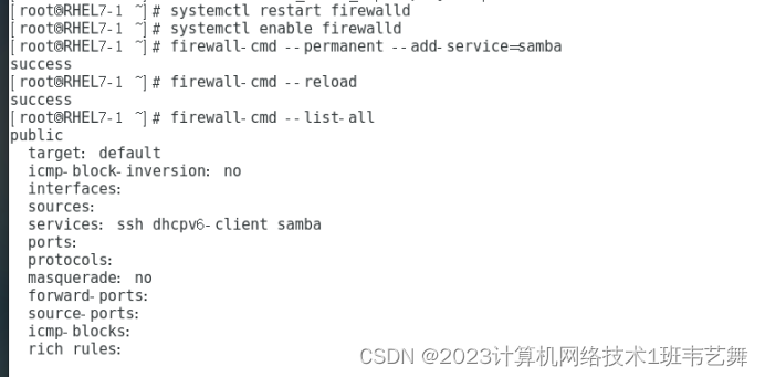 注意:在Linux 服务中更改配置文件后,一定要记得重启服务,让服务重新加载配置文件,这样新的配置才可以生效。其他命令还有 Systemctl restart smb、 Systemctl reload smb等。
