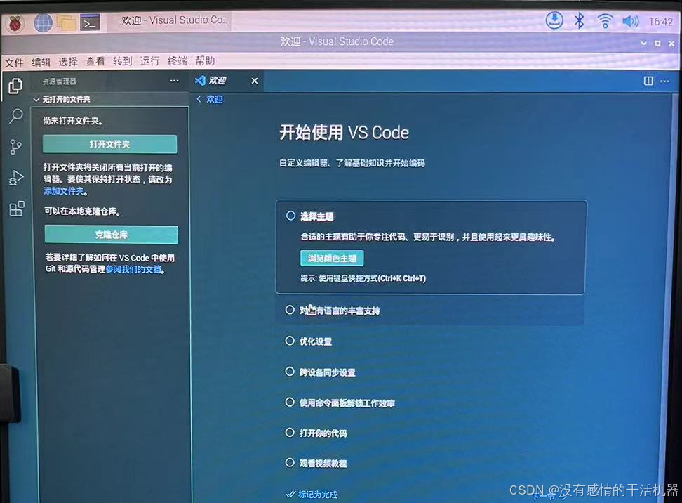 装完系统后SD卡插到树莓派4B上,初次进入系统完成那些用户、时区等的设置就正常进入桌面了,我接的是一个竖屏HDMI,所以需要旋转屏幕