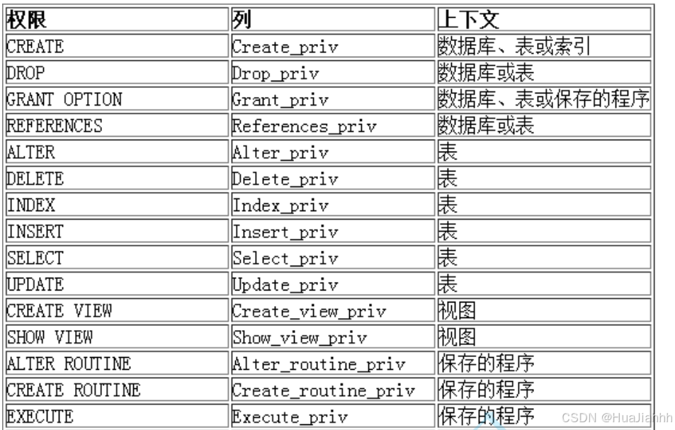 🌰 grant select on test.* to 'huajiahhh'@'localhost';