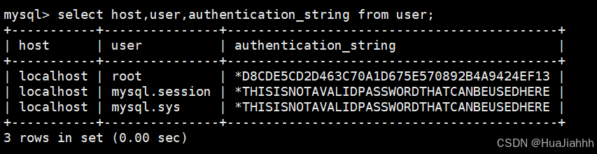 user: 用户名; authentication_string:用户密码,加密之后的;