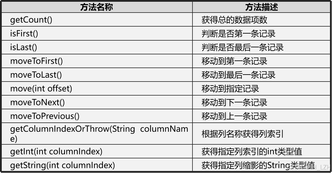 在Android中查询数据是通过Cursor类来实现的,当我们使用SQLiteDatabase.query()方法时,会得到一个Cursor对象,Cursor指向的就是每一条数据。