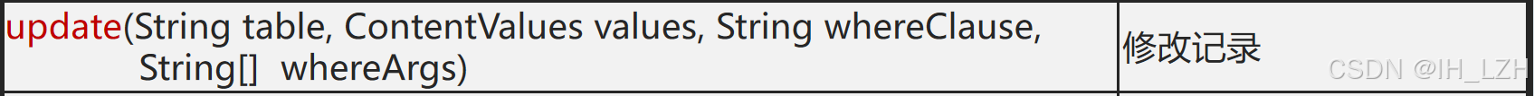 whereArgs:修改条件参数,当whereClause使用占位符时,在此处填入条件参数,形式为字符串数组;