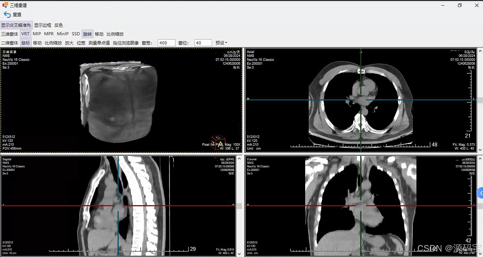 用户可以通过鼠标自由调节影像的窗宽窗位,也可以选择默认值。
