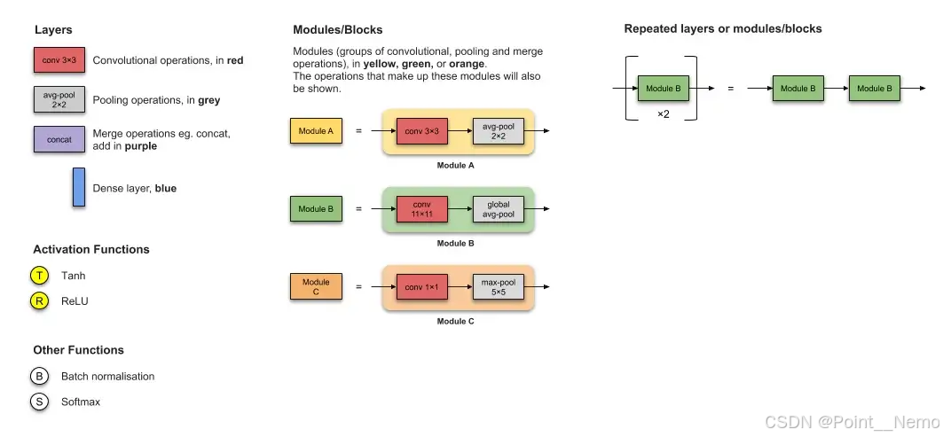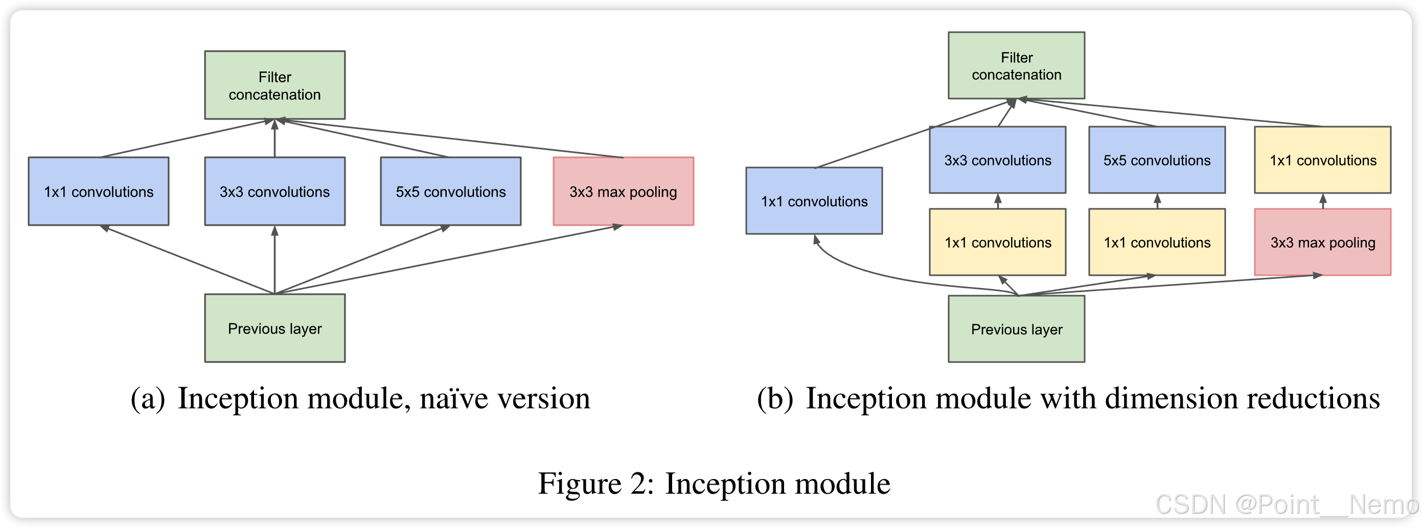 另外增加了两个辅助分支,作用有两点,一是为了避免梯度消失,用于向前传导梯度。反向传播时如果有一层求导为0,链式求导结果则为0。二是将中间某一层输出用作分类,起到模型融合作用,实际测试时,这两个辅助softmax分支会被去掉,在后续模型的发展中,该方法被采用较少,可以直接绕过,重点学习卷积层的并行结构与1x1卷积核部分的内容即可。