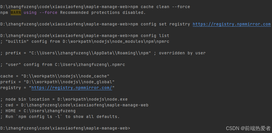 ,查看 registry 已经被更改为默认的 npm 公共镜像地址。四、可以正常使用npm啦~