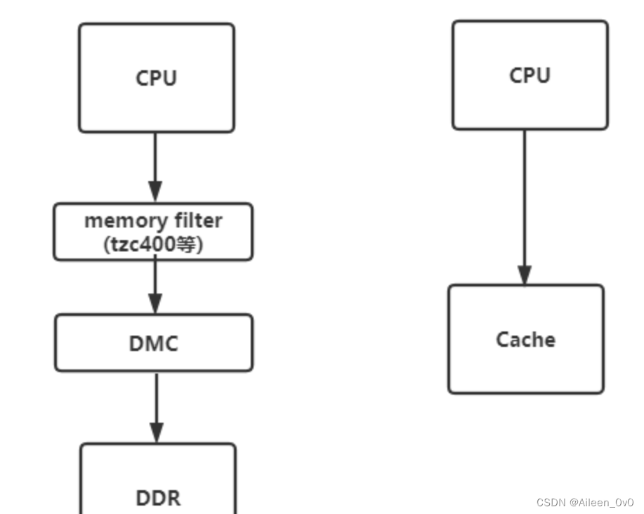 在安全架构的设计时,我们在Core和DDR之间增加了一个TZC做为memory filter,数据流为:Core ---> TZC---->DDR