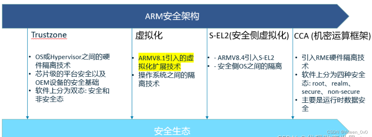 随着时代的发展、科技的进步,安全需求的趋势也越来越明显,ARM也一直在调整和更新其新架构,很多都是和安全相关的。 如下列出了一些和安全相关的架构